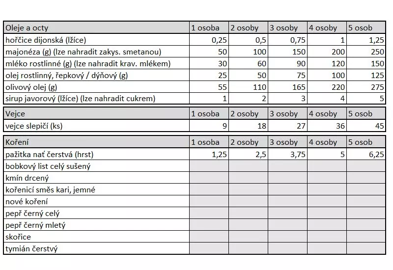 Nákupní seznam jsme vám přepočítali do jednotlivých skupin a na přesné množství podle počtu osob. Kromě surovin obsažených v nákupním seznamu, počítá recept Těstoviny s bylinkovým pestem také s divokými bylinkami. Můžete se vydat do přírody a nasbírat si to,  co zrovna roste - kopřivy, bršlici, popenec, medvědí česnek... Divoké bylinky ale nemusí být pro každého dostupné - je možné je nahradit libovolnými kupovanými. Např. bazalkou. Nezapomeňte je ale přidat do nákupu - na seznamu nejsou:)
