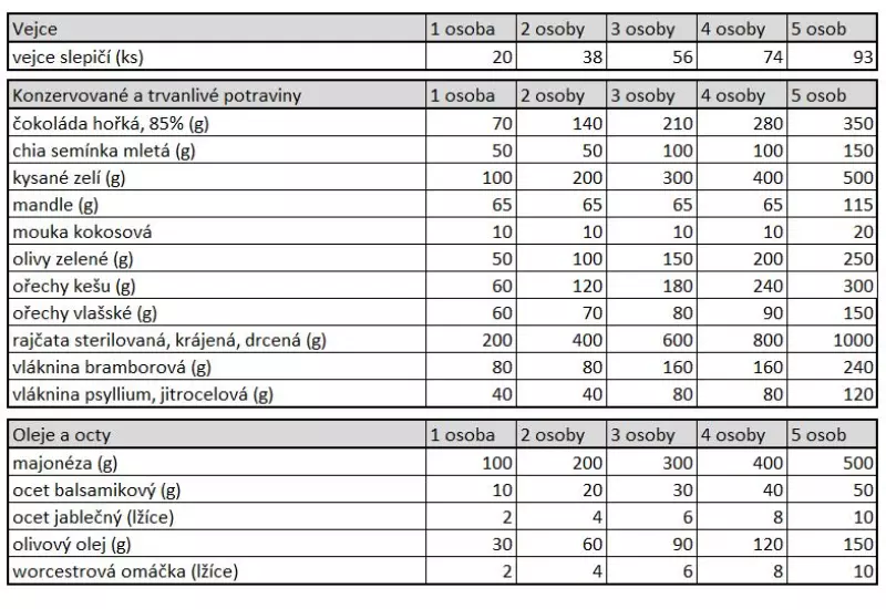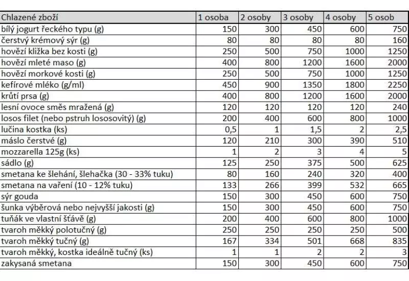 Nákupní seznam jsme vám přepočítali do jednotlivých skupin a na přesné množství.